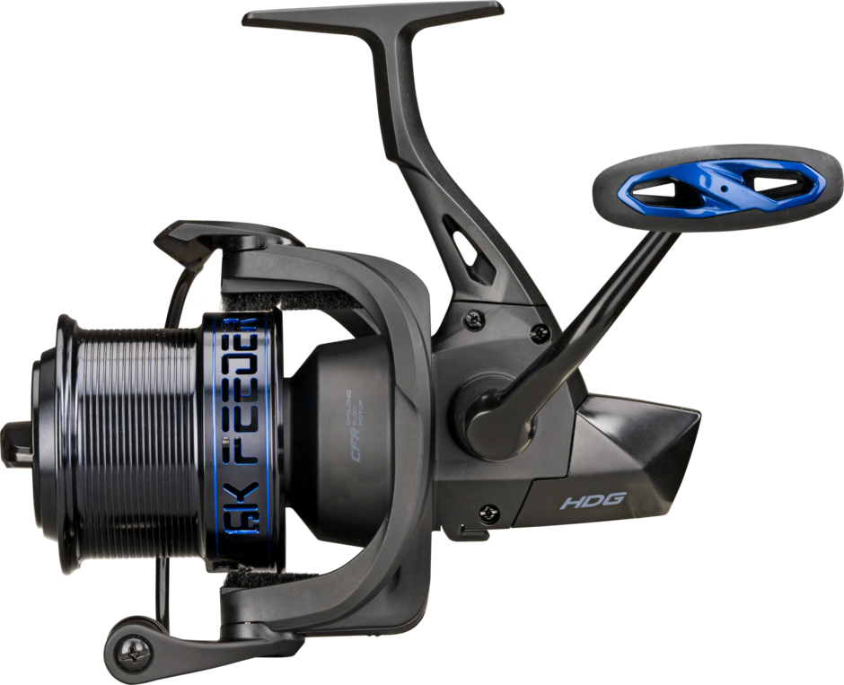 Big pit features in a compact package. The 6K-Feeder is a high-performance feeder reel designed specifically for targeting freshwater species like carp in small and medium-sized waters. Thanks to the 30 mm Long Stroke spool and the super-slow Worm Shaft Transmission system, the 6K-Feeder operates with minimum friction. The heavy-duty aluminum bail wire has a one-piece bail construction to help avoid tangles even with the finest braids. And when it's time to play the fish, the reel’s fast progressive drag system takes you from locked-up to free-flowing in just a couple of clicks. Finished with impressive black-and-blue cosmetics and an appealing price tag.